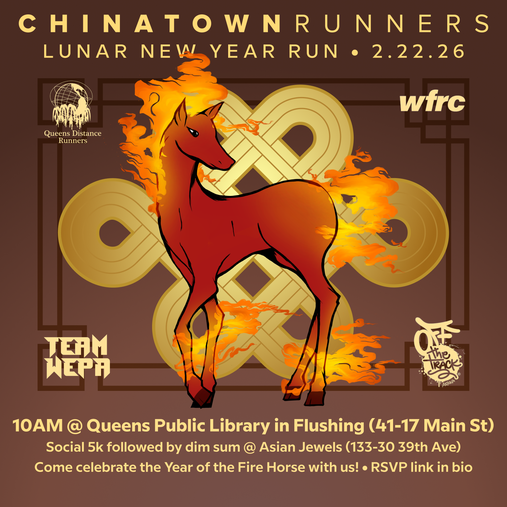 It’s a new year and we’re back at it! Come join us for our annual Lunar New Year run in Flushing, Queens with our friends Queens Distance Runners , World’s Fair Run Crew, Off The Track Astoria, and TEAM WEPA! Celebrate the Year of the Fire Horse in style with a casual community-paced 5k ending with family-style dim sum at Asian Jewels. Additionally, we will be fundraising with our merchandise sales and encouraging donations to NYNICE!